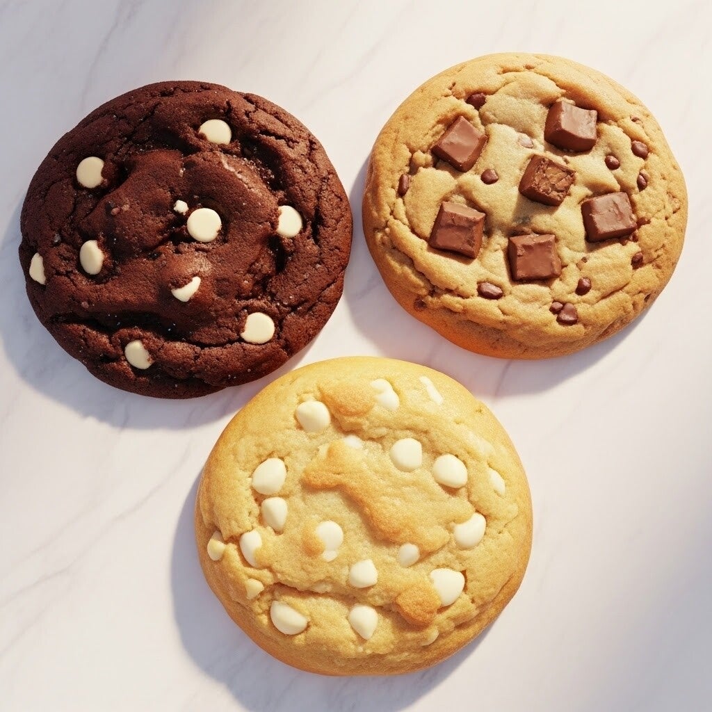- Brownies with White Chocolate Chips: A decadent brownie cookie with creamy white chocolate chips.